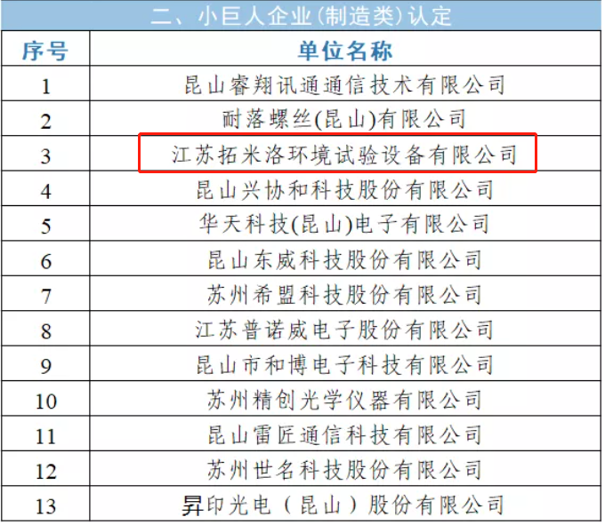 江蘇拓米洛環境試驗設備有限公司獲2021年省級小巨人企業認定
