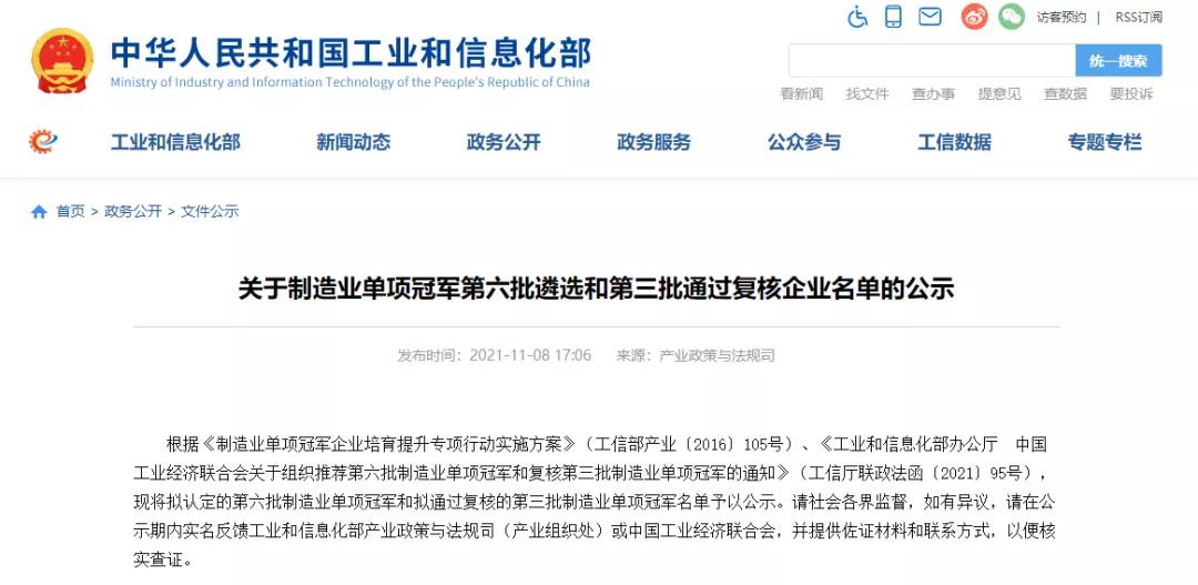 康斯特再次榮獲“制造業單項冠軍”稱號
