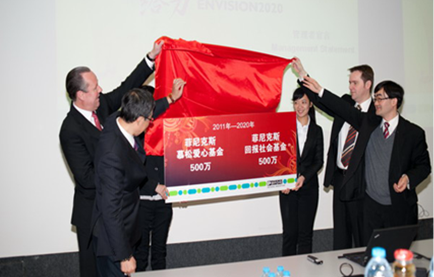 力所能及回報社會,做優秀企業公民。秉承“雪中送炭,做優秀企業公民”的理念,菲尼克斯電氣成立回報社會基金和慕松愛心基金,勇于肩負社會責任。于內,關注員工工作和生活,對于因重大變故導致困難的員工家庭,開展應急救助;于外,從1994年開始關注希望工程,隨后陸續在全國援建8所菲尼克斯希望小學,支持2所西藏那曲地區貧困小學;從1995年開始關注南京兒童福利院,2009年開始關注高淳社會福利院;2001年開始陸續在10余所大學設立獎學金以及建立實驗室;傾力支持抗震救災(2008年汶川地震、2009年玉樹地震、2013年雅安地震);2009年開始支持大學生圓夢行動,累計支持超過400名大學生入學;2014年開始支持普方協會孩子完成學業;2020年為湖北和南京的醫院捐贈款項和醫用物資,為武漢雷神山醫院捐贈急需的電氣產品,為德國華僑贈送防護物品,全力抗擊新冠疫情;2021年為支持河南抗洪救災……菲尼克斯電氣勇擔社會責任從未止步!