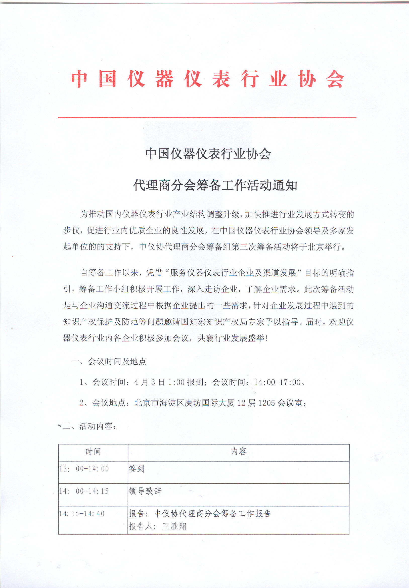為推動(dòng)國(guó)內(nèi)儀器儀表行業(yè)產(chǎn)業(yè)結(jié)構(gòu)調(diào)整升級(jí),加快推進(jìn)行業(yè)發(fā)展方式轉(zhuǎn)變的步伐,促進(jìn)行業(yè)內(nèi)優(yōu)質(zhì)企業(yè)的良性發(fā)展,在中國(guó)儀器儀表行業(yè)協(xié)會(huì)領(lǐng)導(dǎo)及多家發(fā)起單位的的支持下,中儀協(xié)代理商分會(huì)籌備組第三次籌備活動(dòng)將于北京舉行。