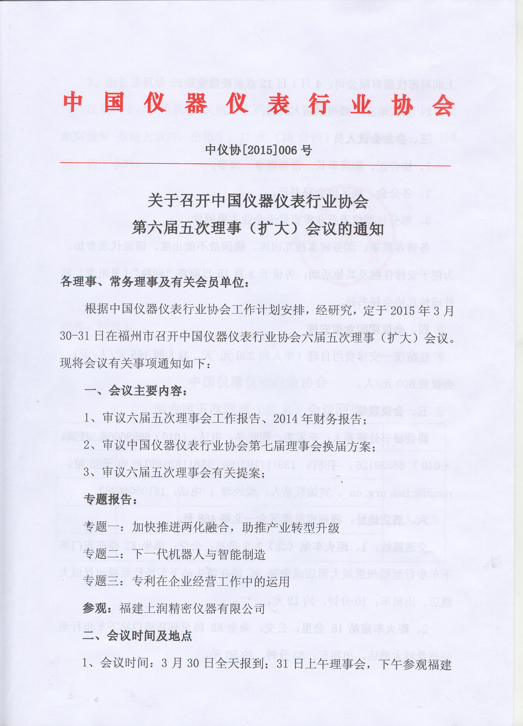 關于召開中國儀器儀表行業協會第六屆五次理事(擴大)