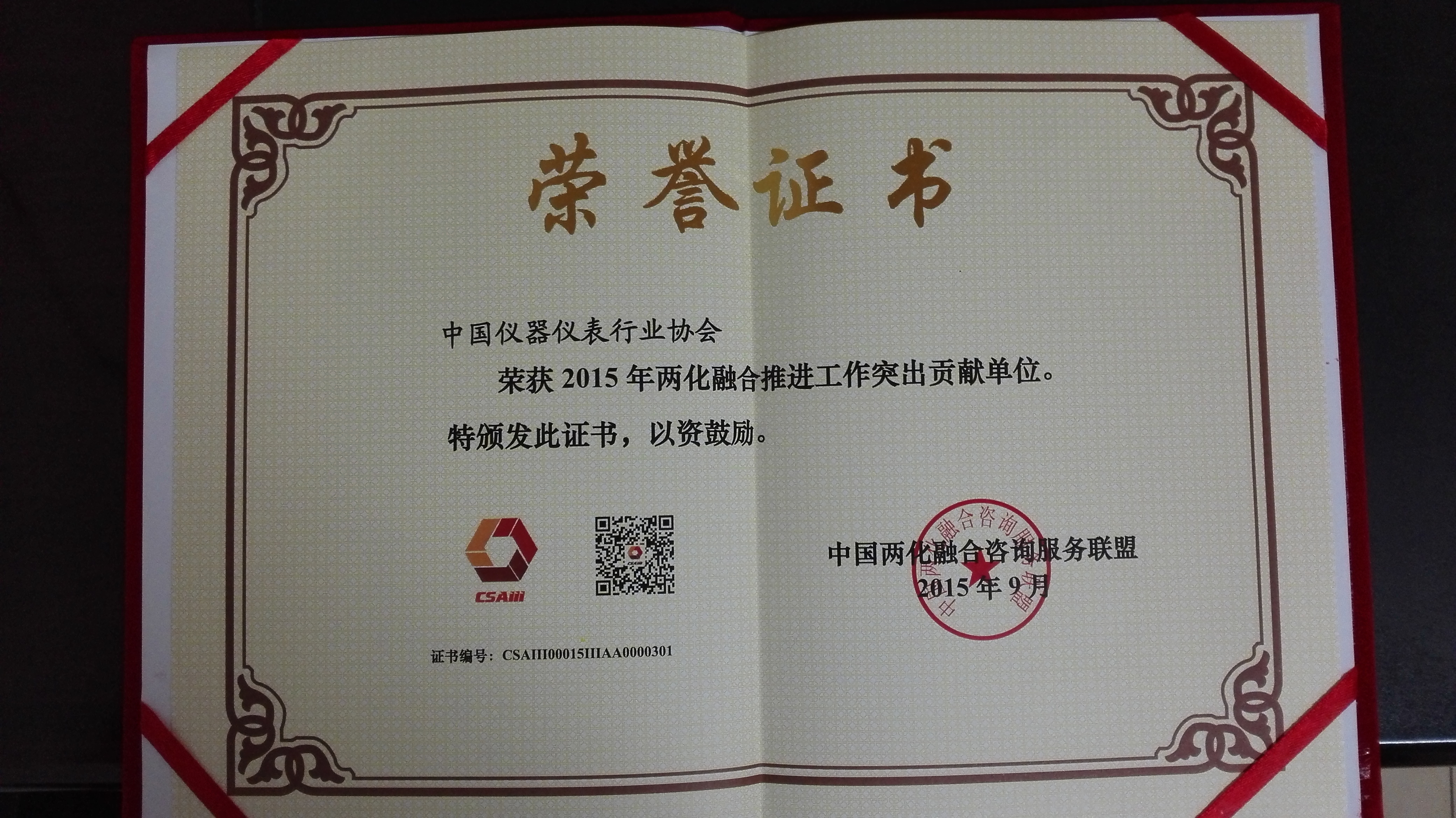 中國儀器儀表行業協會作為工信部“儀器儀表行業企業生產過程信息化示范及推廣應用”試點項目的承擔單位,在儀器儀表行業大力推進生產過程信息化,取得了顯著成績,榮獲2015年兩化融合推進工作突出貢獻單位。