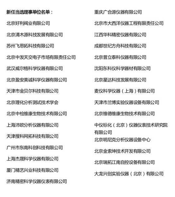 另有30家儀器儀表工控行業(yè)內(nèi)的生產(chǎn)制造廠商及中間渠道代理商當(dāng)選理事單位,名單如下: