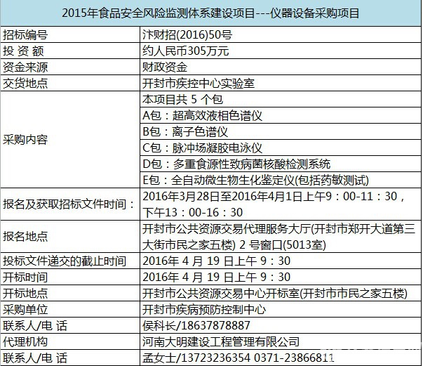 唐山市食品藥品監督管理局2015年食品檢驗檢測儀器設備招標公告