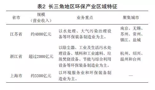 (2)從長三角地區相關產業政策來看,環保產業將作為地區經濟發展的增長點大力發展,上海市環保產業的發展仍以環境服務為主;江蘇省以環保裝備制造的高端化發展為主;浙江省則根據區域產業基礎,大力建設大氣污染防治和水污染防治設備制造基地、固廢處理設備制造基地、環境服務業集聚區等。