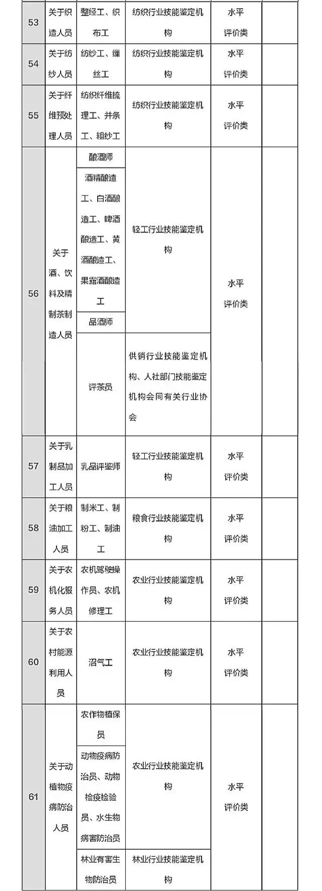 國家職業資格目錄清單(151項)