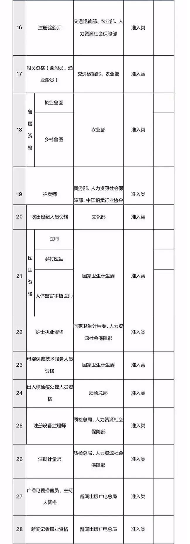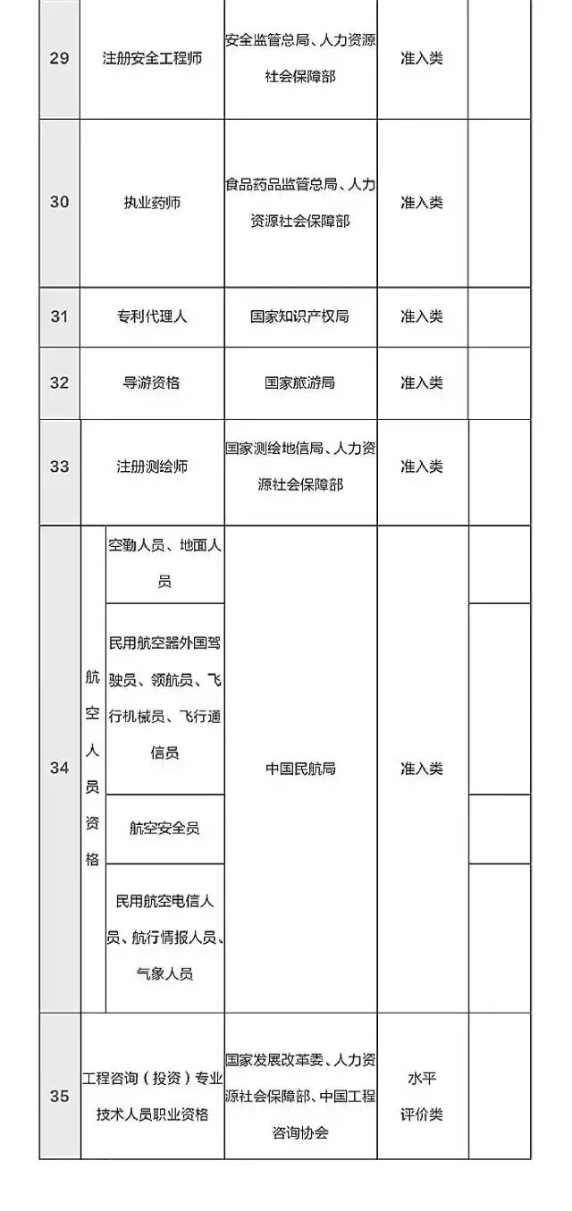 12月16號,人力資源和社會保障部公示了國家職業資格目錄清單,擬列入職業資格目錄清單151項。其中,專業技術人員職業資格58項,技能人員職業資格93項。