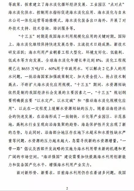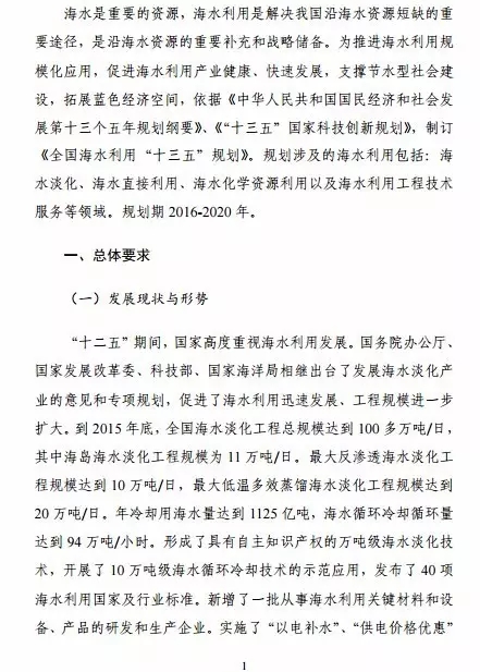 附:《國家發(fā)展改革委 國家海洋局關(guān)于印發(fā)<全國海水利用“十三五”規(guī)劃>的通知》全文