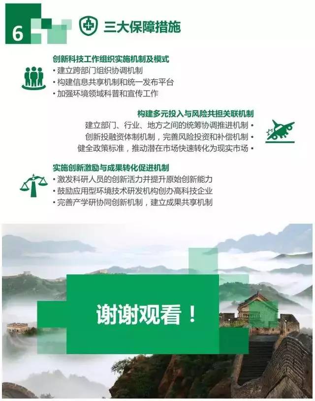 持續支持環境污染控制等關鍵領域的科技創新團隊建設,培育若干中青年科技創新領軍人才、科技創新創業人才,培養一批高水平的科技人員和企業工程技術人員,加強基礎研究,強化原始創新、集成創新、引進消化吸收再創新,發揮科技創新引領作用,大幅度提升我國生態環境保護的自主創新能力和核心競爭力。