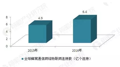 2015-2016年全球蜂窩通信網絡物聯網連接數(單位:億個連接)