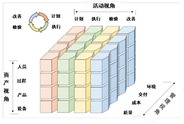 資產(chǎn)視角向生產(chǎn)組織展示該SMU的資產(chǎn)或財產(chǎn),包括人員、過程、產(chǎn)品和設(shè)備四種類型,這與RAMI4.0模型中的資產(chǎn)基本一致。有些資產(chǎn)還可以在不同SMU之間傳輸。活動視角涉及該SMU的人員和設(shè)備所執(zhí)行的各種活動,包括“計劃、執(zhí)行、檢驗、改善、活動”的不斷循環(huán)。管理視角說明實施的目的,并指出管理要素“質(zhì)量、成本、交付、環(huán)境”之間的關(guān)系。IVRA SMU是基于日本管理學(xué)的持續(xù)改善(Kaizen)概念提出的,SMU的資產(chǎn)和活動都應(yīng)以控制質(zhì)量、成本、交期準確率、環(huán)境為目標。因此,在每個SMU 中通過操作“人員、過程、產(chǎn)品、設(shè)備”資產(chǎn),重復(fù)進行“計劃->執(zhí)行->檢驗->改善”的生產(chǎn)活動循環(huán),以實現(xiàn)提高“質(zhì)量、成本、交付、環(huán)境”評估指標。