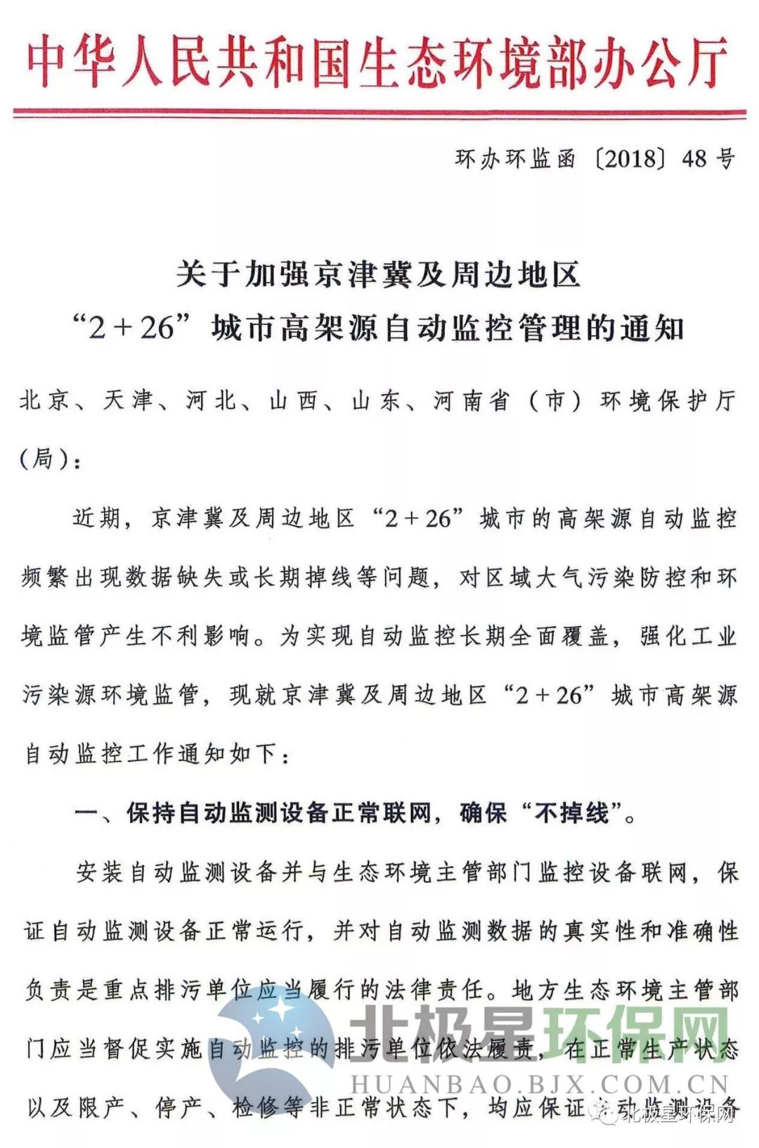 北極星環(huán)保網(wǎng)獲悉,生態(tài)環(huán)境部印發(fā)《關(guān)于加強京津冀及周邊地區(qū)“2+26”城市高架源自動監(jiān)控管理的通知》。通知稱,近期京津冀及周邊地區(qū)“2+26”城市的高架源自動監(jiān)控頻繁出現(xiàn)數(shù)據(jù)缺失或長期掉線等問題,對區(qū)域大氣污染防控和環(huán)境監(jiān)管產(chǎn)生不利影響。