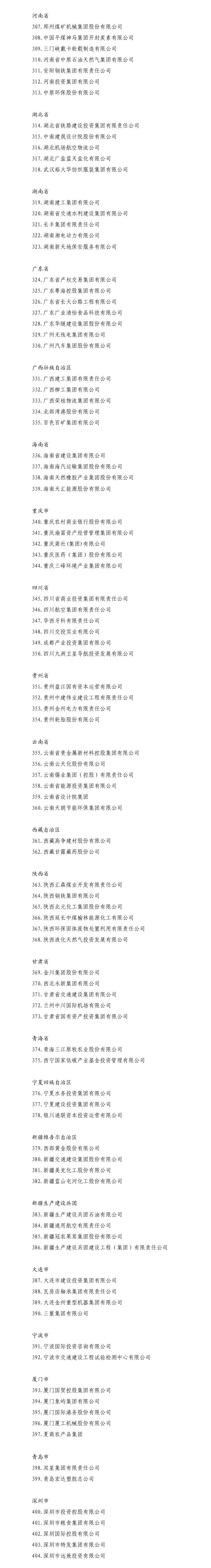 名單顯示,共有404家企業(yè)入選,包括224家中央企業(yè)及其子公司,以及180家地方國資企業(yè)。
