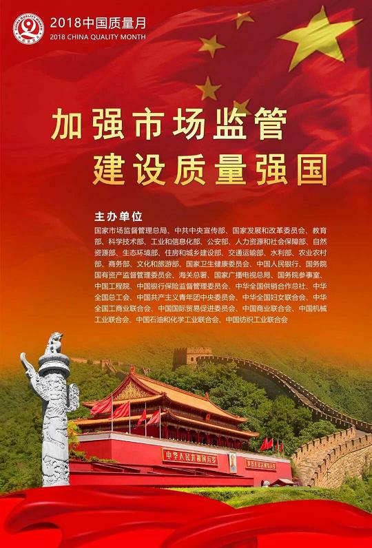 2018年9月,市場監管總局聯合中共中央宣傳部、教育部、工業和信息化部、銀保監會、全國總工會、共青團中央、機械工業聯合會等共34個部門,以“加強市場監管 建設質量強國”為主題,共同部署開展2018年全國“質量月”活動。
