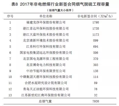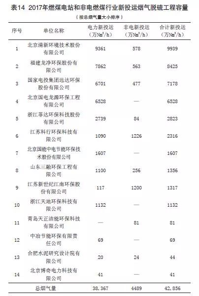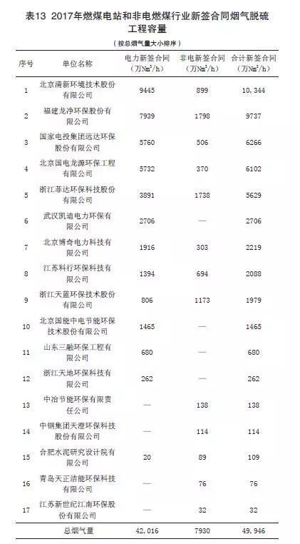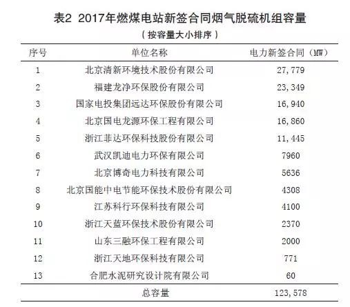 (2)2017年度燃煤煙氣全行業新投運脫硫工程容量
