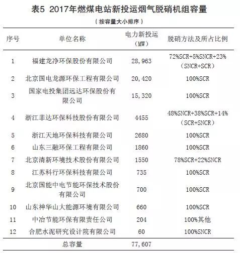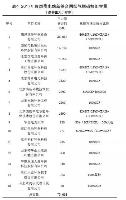 (4)2017年燃煤電站新投運的煙氣脫硝工程機組容量