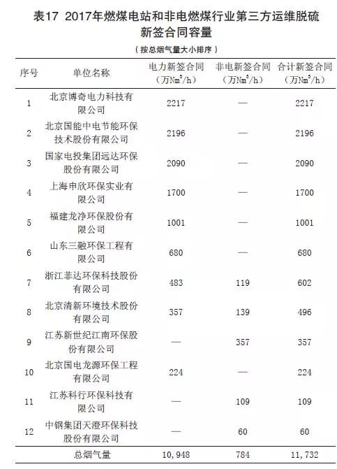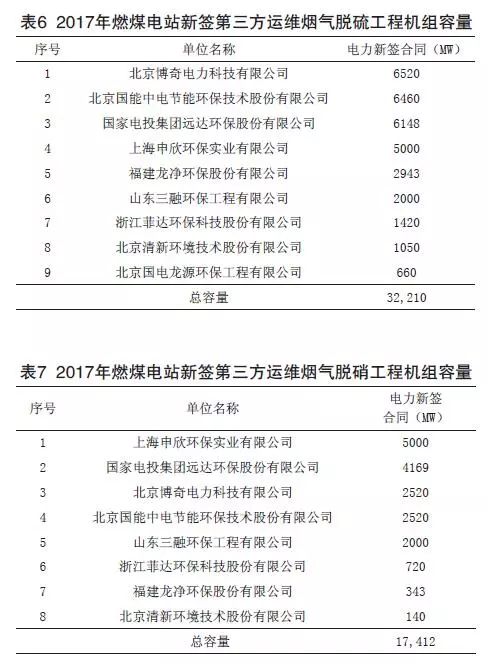 (5)2017年度燃煤煙氣全行業新簽第三方運維容量