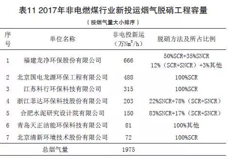 (4)2017年非電燃煤行業新投運脫硝工程容量