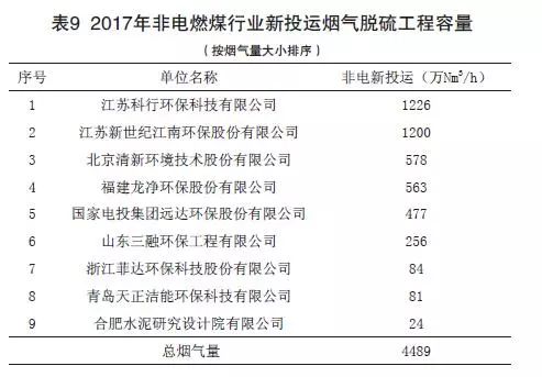 (2)2017年非電燃煤行業新投運脫硫工程容量
