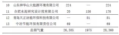 表9給出了參與調查各會員企業2017年新投運非電燃煤脫硫工程處理煙氣量情況,不包括歷史累計煙氣量。截至2017年底,參與調查企業的全國非電新投運煙氣脫硫工程總煙氣量為4489萬Nm3/h。其中江蘇科行和江蘇新世紀江南環保的非電燃煤新投運脫硫工程煙氣量最多,分別為1226萬Nm3/h和1200萬Nm3/h。