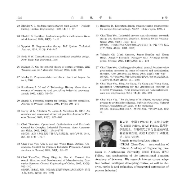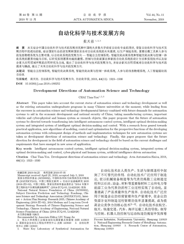 柴天佑院士|自動化科學與技術發展方向