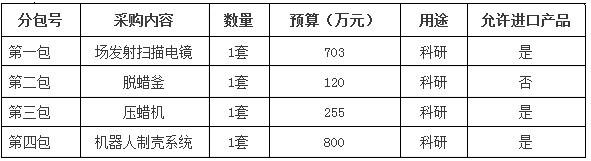 注:包括場發射掃描電子顯微鏡壹套、落地冷凍高速離心機壹套、熱重分析儀壹套、差示掃描量熱分析儀壹套,接受進口產品投標。