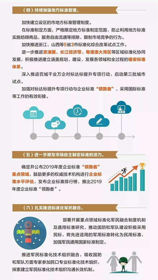 中國(guó)標(biāo)準(zhǔn)化發(fā)布一圖看懂2019年標(biāo)準(zhǔn)化工作部署。據(jù)悉,2019年,將持續(xù)推進(jìn)國(guó)家標(biāo)準(zhǔn)的精簡(jiǎn)優(yōu)化。推動(dòng)強(qiáng)制性國(guó)家標(biāo)準(zhǔn)“取消條文強(qiáng)制實(shí)施全文強(qiáng)制”等改革舉措。