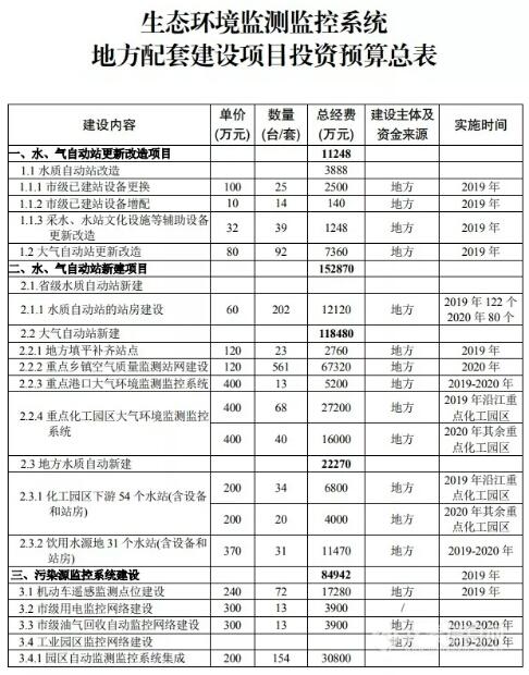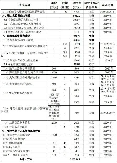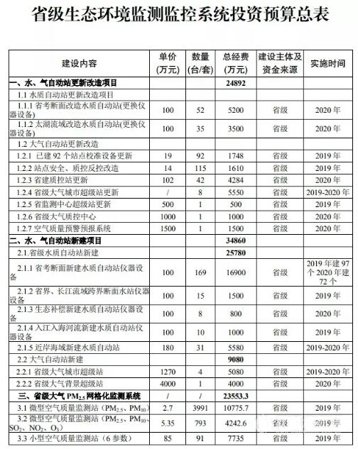 對于建設項目,包括水、氣自動站更新改造項目;水、氣自動站新建項目;省級大氣PM2.5網格化監測系統;自然生態監測系統建設;污染源監控系統建設;無人機監測能力建設;各級實驗室能力建設;環境氣象與人工增雨系統建設。