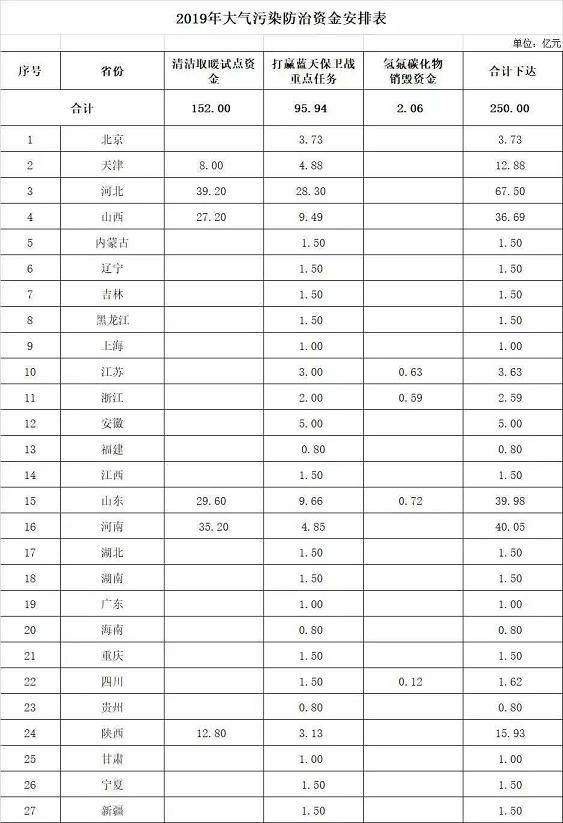 近日,財政部接連發(fā)布《財政部關于下達2019年度大氣污染防治資金預算的通知》、《財政部關于下達2019年度水污染防治資金預算的通知》、《財政部關于下達2019年土壤污染防治專項資金預算的通知》等,下達各省大氣、污水和土壤三項污染防治資金預算,合計490億元。