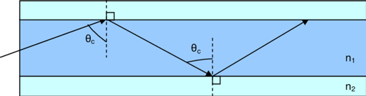 簡單來說達到全反射需要滿足兩個條件:(1) 傳輸介質即波導材料需要具備比周圍介質高的折射率(如圖2所示n1> n2); (2) 光進入波導的入射角需要大于臨界角θc.