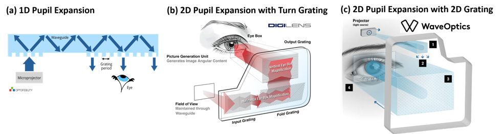 圖 6. 衍射光波導中的擴瞳技術: (a) 一維擴瞳,
