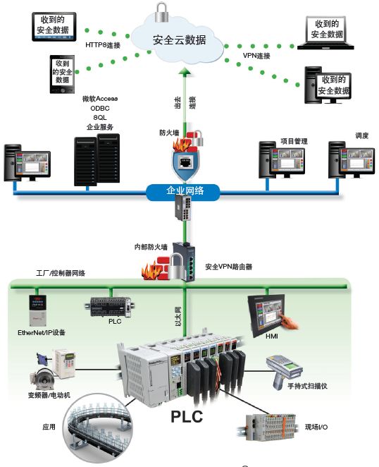 圖2 :從控制器獲取遠程數據。一些現代控制器,具有多達七個內置通信端口,可提供連接工廠車間和企業級業務網絡的關鍵功能。