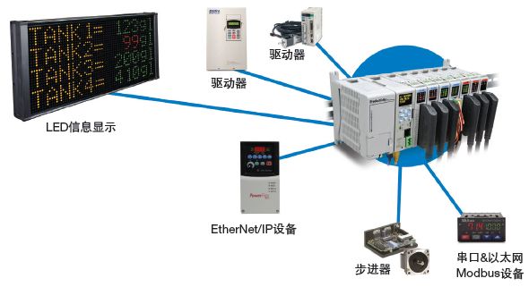 選擇自動化控制器時需要考慮的另一個重要特性是通訊能力。應提供多個以太網和串行通訊端口,以便與人機界面(HMI)、電機驅動器和其它設備輕松集成(圖1)。這些高速以太網端口也可用于點對點(P2P)或業務系統網絡。對EtherNet/IP 和Modbus TCP/IP 以太網協議的支持,這點也是非常重要。