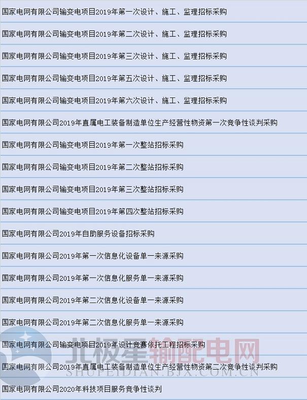 首先比較明顯的一點是2019年12月份未安排有招標(biāo)計劃,最早一批招標(biāo)計劃發(fā)布時間在2月份,為“國家電網(wǎng)有限公司輸變電項目2020年第一次變電設(shè)備(含電纜)招標(biāo)采購”。此外,2020年度招標(biāo)計劃中整個招標(biāo)項目減少了近18個項目,包括了設(shè)計施工監(jiān)理招標(biāo)、電工裝備制造單位生產(chǎn)經(jīng)營性物資競價招標(biāo)、變電站整站招標(biāo)以及信息化單一來源招標(biāo)等。未有變化招標(biāo)項目依然包括了“輸變電項目變電設(shè)備類招標(biāo)”、電能表類招標(biāo)以及信息化設(shè)備和服務(wù)招標(biāo)等。