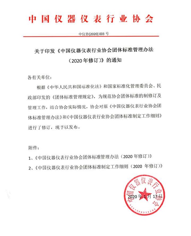 關于印發《中國儀器儀表行業協會團體標準管理辦法(2020年修訂)》的通知