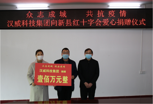 2月3日,漢威科技集團股份有限公司向信陽新縣紅十字會捐贈資金100萬元,專項用于該地區購買新型冠狀病毒肺炎急需的醫療物資及滿足該地區部分緊急現金需求,為保護革命老區人民群眾生命安全健康、為堅決打贏疫情防控阻擊戰貢獻綿薄之力。
