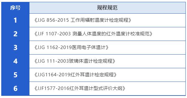 升級后的體溫計檢定方案適用于以下規程規范: