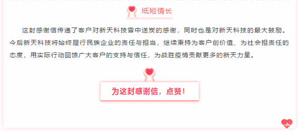 新天科技榮獲高度贊譽(yù)!一封感謝信,濃厚攻堅(jiān)情