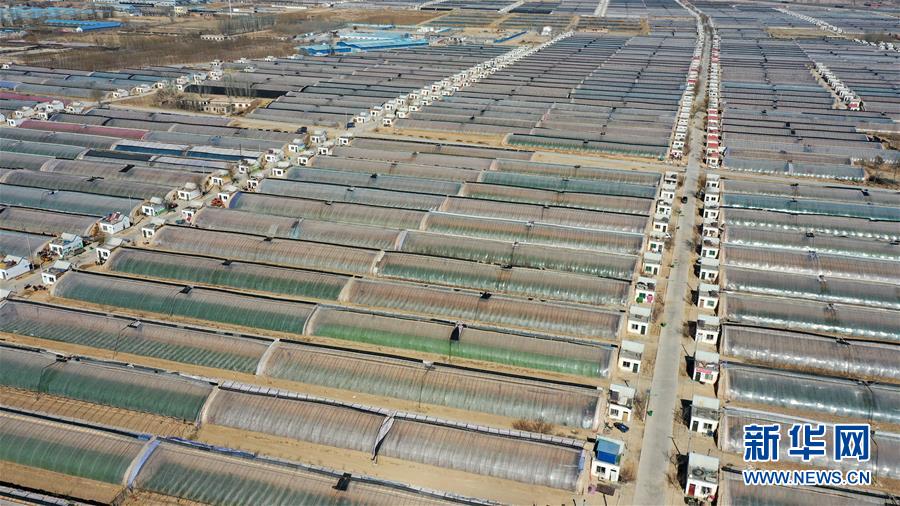 該項目已建成42座蔬菜育苗大棚,并移栽600畝陸地菜苔幼苗。 新華社記者 王鵬 攝
