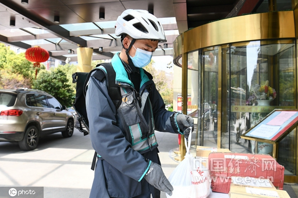 圖為外賣和快遞無接觸的分發(fā)點。(圖片來源:東方IC)