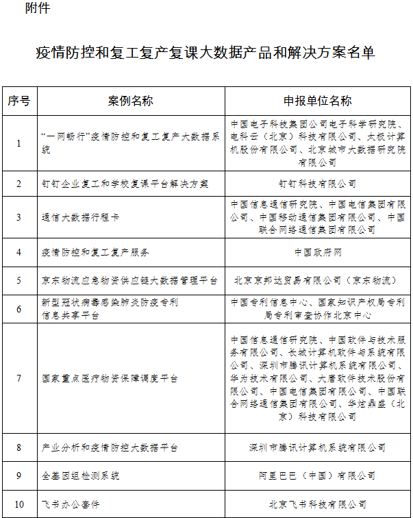 附件:疫情防控和復(fù)工復(fù)產(chǎn)復(fù)課大數(shù)據(jù)產(chǎn)品和解決方案名單