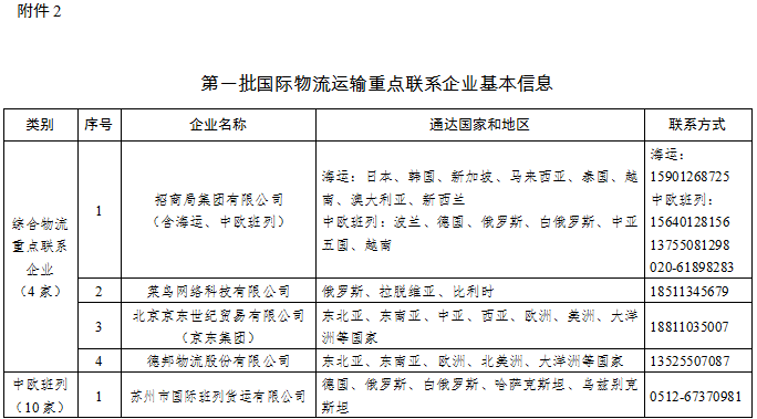 附件:1.第一批國際物流運(yùn)輸重點(diǎn)聯(lián)系企業(yè)名單.doc