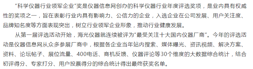 北京海光儀器連續13年榮獲“科學儀器行業領軍企業”