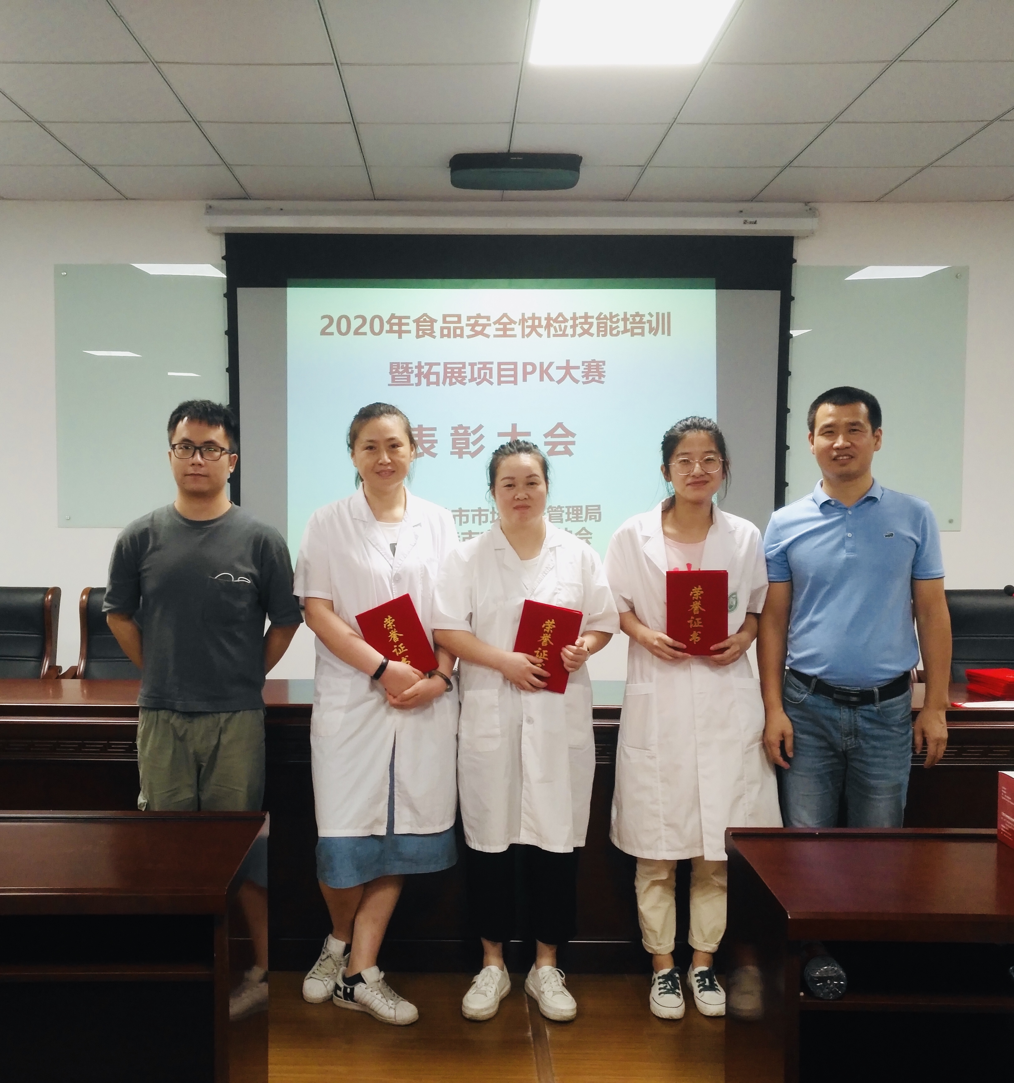 各農貿市場檢測員紛紛報名,共50多人參加培訓,培訓以理論和實操考核為主,以PK大賽的方式選拔優秀檢測人員,內容為食品安全快檢理論知識、快檢儀器及輔助設備的介紹、拓展項目培訓交流、食品安全快檢基礎理論+實操考核,實操培訓內容為農藥殘留、亞硝酸鹽、鹽酸克倫特羅具體操作流程等快檢知識,最后進行食品安全拓展項目PK大賽。