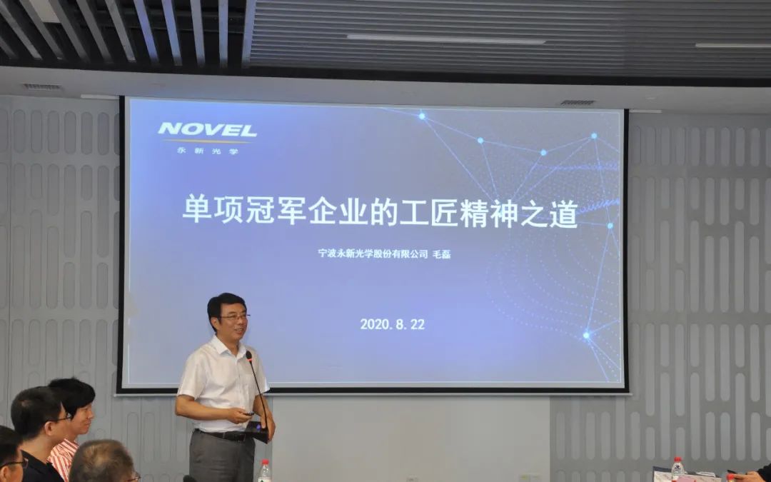 接著在座談會上,毛磊開展了“單項冠軍企業的工匠精神之道”的主題分享,以永新光學創新歷程的思考與創新實踐為切入點,闡述了單項冠軍企業的工匠精神之道——專注、堅持、積累和沉淀,強調了企業的發展必須有核心競爭力。在交流環節,徐平炬會長就如何平衡企業的科技含量與市場規模與毛磊進行了交流,接著大家紛紛提問,從如何進一步提升永新光學的國際地位、疫情對不同行業的危與機等多個角度,展開了深入探討。