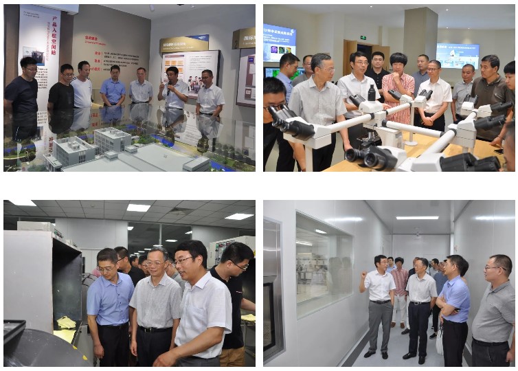 在公司陳列室,考察團一行認真聽取了毛磊就公司的發展歷程、企業文化、所獲榮譽等相關情況的介紹,了解了公司的科技創新成果、產品和市場情況以及未來發展規劃等,并觀摩體驗了國家重點研發計劃重點專項《高分辨熒光顯微成像儀》等樣機。隨后,又參觀了生產車間,了解了光學元件及顯微儀器的部分生產流程。