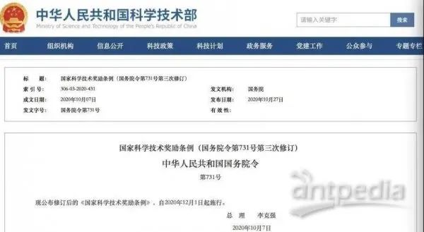 現(xiàn)公布修訂后的《國家科學(xué)技術(shù)獎勵條例》,自2020年12月1日起施行。