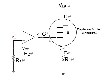 圖 3. 耗盡型 MOSFET 與運算放大器組成的電壓源示意圖