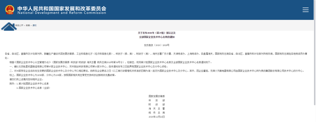 近日,根據《國家企業技術中心認定管理辦法》(國家發展改革委 科技部 財政部 海關總署 稅務總局2016年第34號令),經審定,2020年(第27批)新認定及全部國家企業技術中心名單發布,先河環保被正式認定為國家級企業技術中心,成為2020年(第27批)國家級企業技術中心河北省唯一一家在列名單企業!