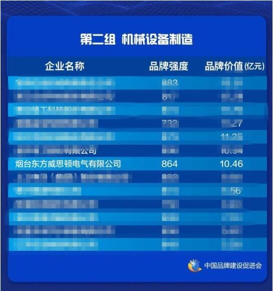 威思頓榮登中國品牌價值榜及煙臺市品牌價值20強榜單